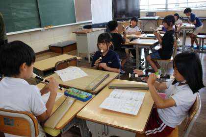 書写では、縦画を書くときの筆遣いや、リズムについて学びました。音楽の時間には、「かくれんぼ」など、リコーダー演奏の練習をしました。算数の時間には、Kmを使った長さの計算の仕方を考えました。