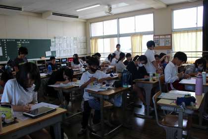 9月3日 6年生 公開日 2025/09/03 更新日 2025/09/03 各学年から 音楽の時間には、「ラバースコンチェルト」の音の響きを感じながら聞いたり、階名をかいたりしました。書写では、伝わりやすいポスターについて考え、かく練習をしました。