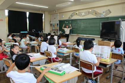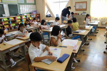 音楽の時間には、「どんぐりさんのおうち」を歌ったり、鍵盤ハーモニカで演奏したりしました。学習用タブレットを使って、「コグトレ」に取り組みました。図工の時間には、お話を聞いて、心に残った場面を描きました。
