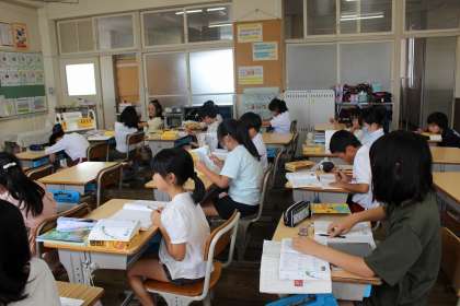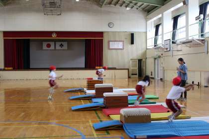体育の時間には、跳び箱に挑戦しました。ふみきりや手の付く位置に気を付けながら跳びました。国語の時間には、体に関する語句を用いた慣用句について調べました。