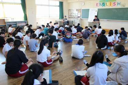 修学旅行の持ち物や日程などについて、学年集会で確認しました。