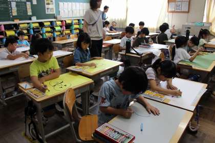 図工の時間には、お話の絵の下描きを参考に、クレヨンで画用紙に好きな場面を描きました。国語の時間には、「かいがら」を音読しました。学活では、気持ちを伝えるにはどうしたらよいのかを考えました。