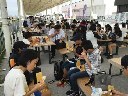 西休憩所でおにぎり弁当を食べました。