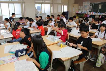 国語の時間には、月例テストの解答確認をしました。