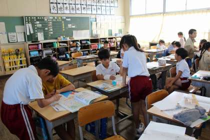 国語の時間には、物語「サーカスのライオン」を読んで、場面ごとに登場人物の様子を読み取りました。算数の時間には、コンパスを利用して、長さ比べをしました。図工の時間には、「じごくのそうべえ」のお話を聞き、お話の内容を確認しました。