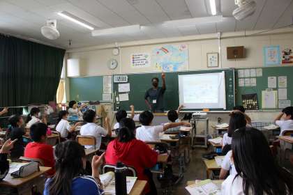 社会科の時間には、これからの日本の食糧生産の課題を解決する方法について調べを進めています。外国語の時間には、道案内の仕方について、復習しました。