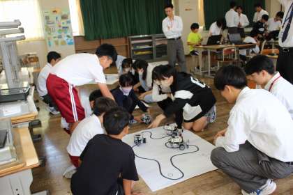 豊田工科高校との交流会を行いました。プログラミングやロボット制御、スーパーボールづくり、タイヤ交換、ゴーカート走行など、体験的な学習ができました。