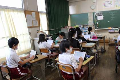 体育の時間には、バレーのトスやレシーブの練習をペアでした後、ゲームをしました。理科の時間には、流れる水の働きについて、キュビナで復習しました。運動会のリレーに向けて、走順をグループで相談しました。