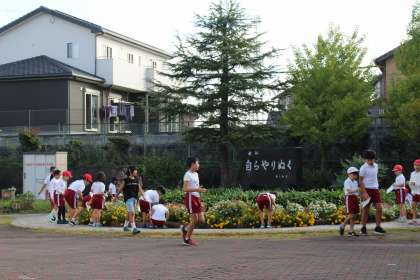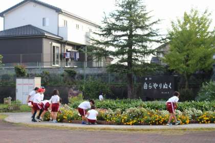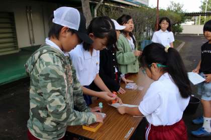 緑化委員会の企画で、花壇の「くさとりまつり」がスタートしました。今週は1〜3年生が取り組みます。草取りをすると、緑化委員がスタンプを押してくれます。はりきって草取りをしました。