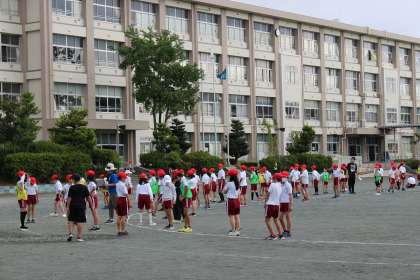 枝豆の収穫をしました。猛暑の影響で、うまく成長できませんでしたが、実のあるものを収穫することができました。体育の時間には、運動会の表現の練習をしました。並び方や移動する場所を確認しました。