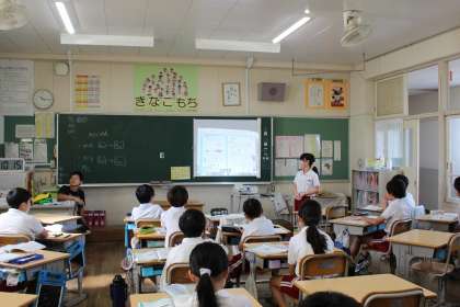 算数の時間には、2つの量を比べるとき、ある量をもとにして、その何倍になっているのかで考えました。