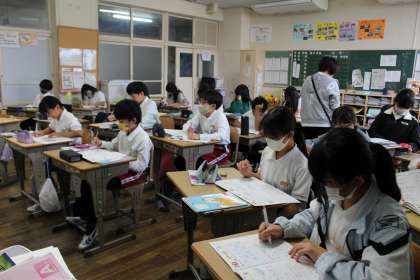 朝の活動では、応援団に教えてもらいながら、運動会の応援練習をしました。算数の時間には、ドリル学習を通して合同な図形などの復習をしました。