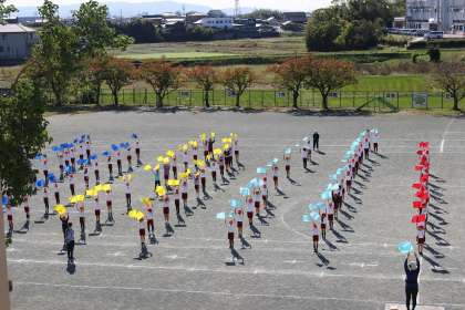 書写の時間には、はねやはらいに気を付けながら「元」を書きました。運動会のダンス練習では、旗を使って練習しました。