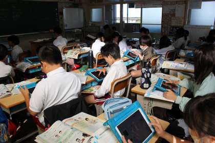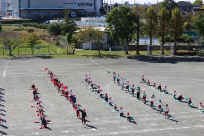 理科の時間には、腕の筋肉のつくりについて調べました。旗をもって運動会のダンスの練習をしました。