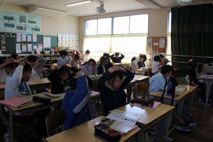 外国語の時間には、町にある建物の言い方についてゲームをしながら慣れ親しみました。