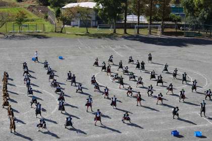 運動会のダンス、組体操の練習を衣装を着けて練習しました。