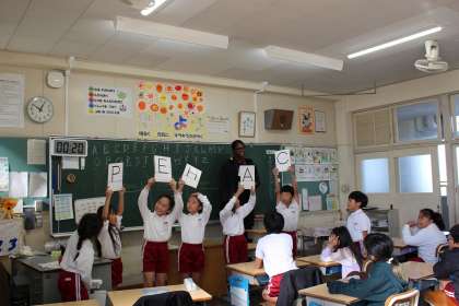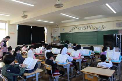 11月7日 3年生 公開日 2025/11/07 更新日 2025/11/07 各学年から 外国語活動の時間には、アルファベットカードを使って、チームで力をあわせてクイズに答えました。音楽の時間には、「ゆかいなもっきん」を鍵盤ハーモニカで演奏しました。