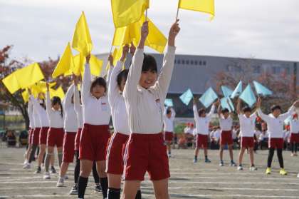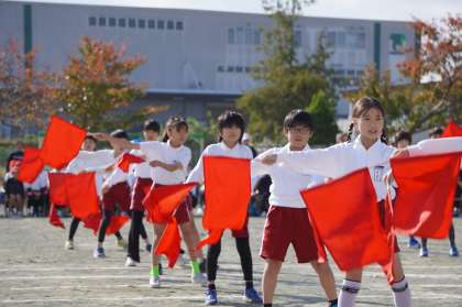 旗を使って、「ライラック」「はい、よろこんで」の曲に合わせて、リズムよく踊りました。
