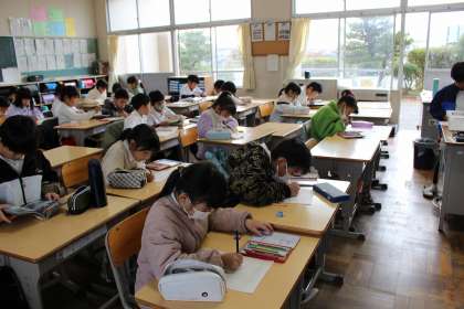 国語の時間には、運動会で頑張ったことを絵日記にかきました。