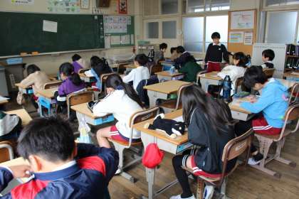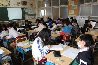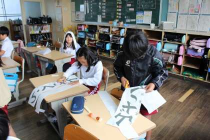 国語の時間には、運動会で頑張ったことを絵日記にかきました。算数の時間には、かけ算の筆算の計算の仕方を考え、友達と説明しあいました。書写では、書き初めの手本を作りました。
