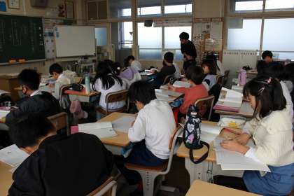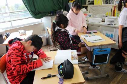 国語の時間には、和室と洋室のよさについて、説明文から読み取ってまとめたり、段落ごとに要約したりしました。