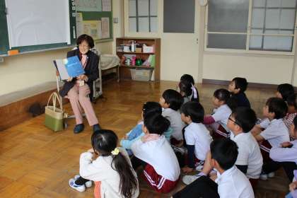 朝の活動では、ボランティアの方に読み聞かせをしていただきました。