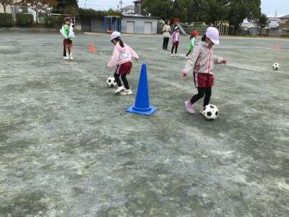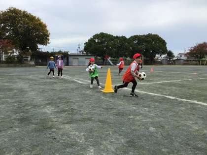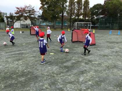 グランパスボールクリニックを行いました。ドリブルやパスの練習をし、ミニゲームをしました。