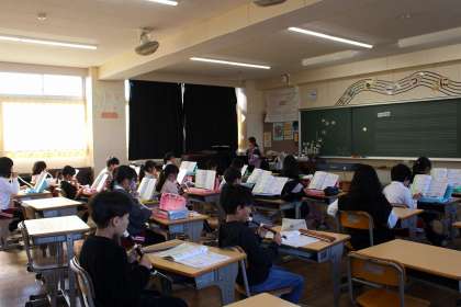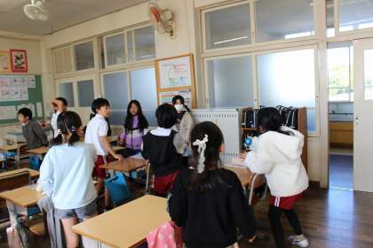 音楽の時間には、鍵盤ハーモニカとリコーダーで「ゆかいなもっきん」を演奏しました。外国語の時間には、アルファベットリレーや形や色の言い方を練習しました。