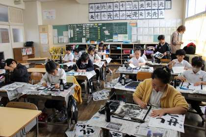 算数の時間には、計算の順序を工夫しながら答えを求めました。書写では、人権週間に向けて「おもいやり」を書きました。体育の時間には、的あてゲームをしました。