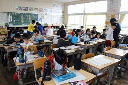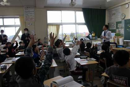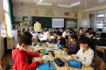 国語の時間には、和と洋の衣食住の違いをテーマに新聞づくりを進めました。理科の時間には、紙コップと紙テープを使って腕の筋肉の模型作りをしました。道徳の時間には、ちょっとした不正はよいのか、悪いのかについて話し合いました。