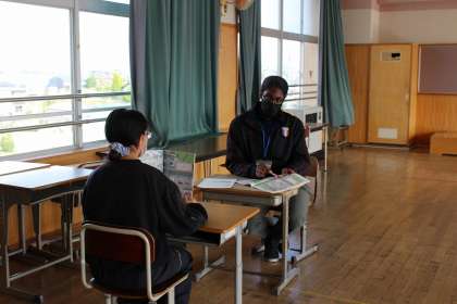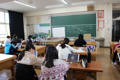 図工の時間には、鳥と花をテーマに版画の下絵を描きました。外国語の時間には、ALTに道案内をしました。音楽の時間には、「夢の世界を」の2部合唱の練習をしました。
