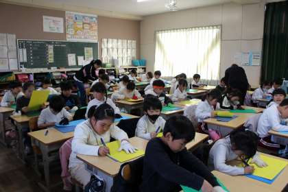 算数の時間には、9の段のかけ算の練習をしました。国語の時間には、「かさこじぞう」を読んで、登場人物や場所などを確認しました。図工の時間には、カッターを使って、いろいろな窓づくりをしました。