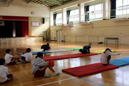 わかまるタイムには、「旅をするならどこへ行きたいか」をテーマに、グループで協力して話し合うことができました。体育の時間には、マット運動やモルックをしました。