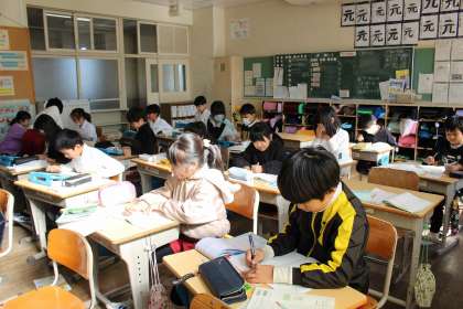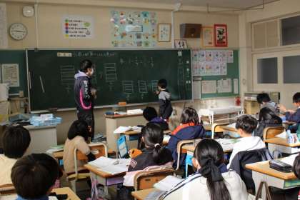 算数の時間には、分数のひき算の計算の仕方について、図を使いながら考えました。国語の時間には、漢字の音読みと訓読みについて知り、読み方を考えました。