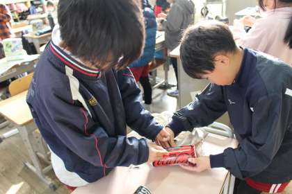 理科の時間には、豆電球を使って電気を通すものと通さないものの実験をしました。図工の時間には、くぎうちトントンのデザイン画を描きました。国語の時間には、「モチモチの木」を読んで、場面ごとに登場人物の気持ちを考えました。