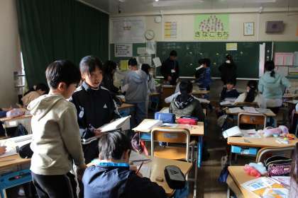 算数の時間には、小数のかけ算の筆算の計算方法について学習しました。体育の時間には、縄跳びのいろいろな技に挑戦しました。