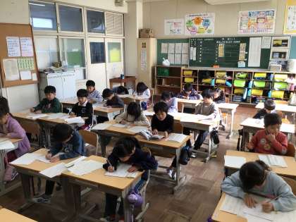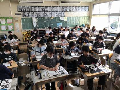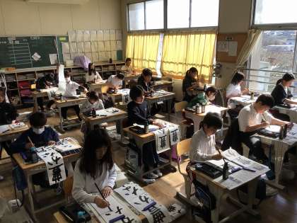 書き初め大会を行いました。今まで練習してきた成果を発揮し、集中して最後まで取り組みました。