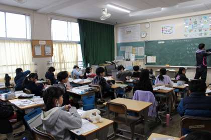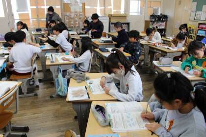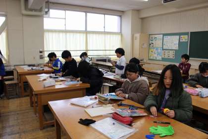 算数の時間には、円の中にどんな三角形ができるかについて調べました。図工の時間には、「くぎうちトントン」の作品を仕上げました。