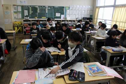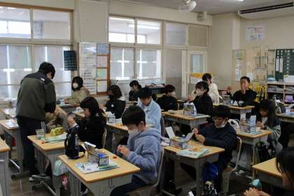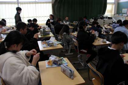 理科の時間には、電磁石の学習のために、コイルづくりをしました。外国語科の時間には、ドンじゃんけんをしながらデザートなどの食べ物の言い方に慣れ親しみました。