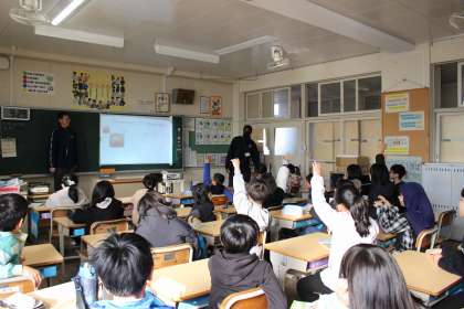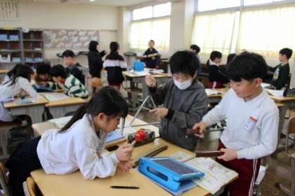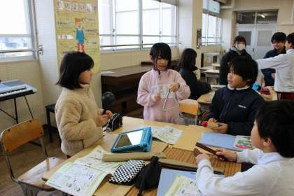 音楽の時間には、グループで「ドキドキする音楽」を演奏して、音の響きや重なり合いを楽しみました。外国語活動の時間には、写真を見て何が写っているのかを当てるクイズをしました。
