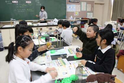 図工の時間には、「くぎうちトントン」の作品鑑賞をしました。算数の時間には、円と三角形の復習をしました。理科の時間には、磁石にくっつくものとつかないものを調べました。