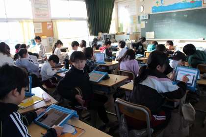 社会科の時間には、瀬戸市や知立市、愛西市から興味のある市を選んで、その市の特徴などについて調べました。