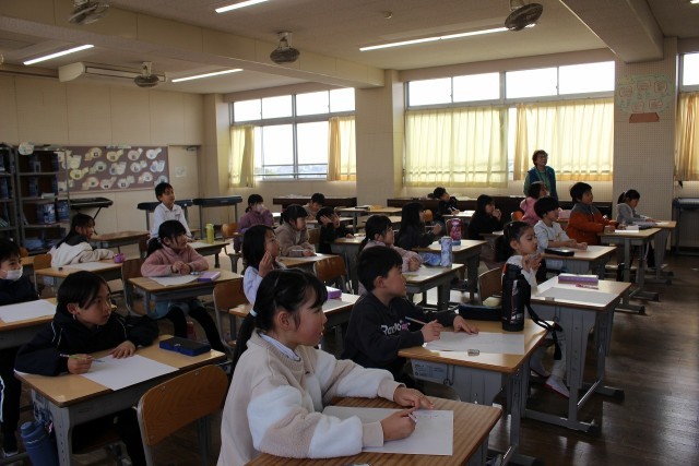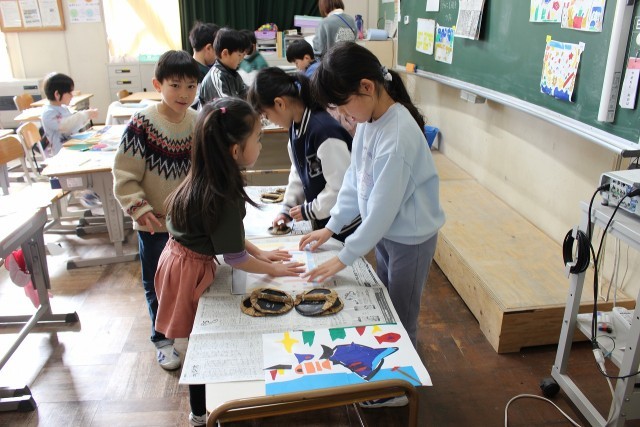図工の時間には、色紙版画の印刷をしました。音楽の時間には、絵描き歌に挑戦しました。生活科の時間には、昨日の新1年生との交流会の感想を絵日記にかきました。