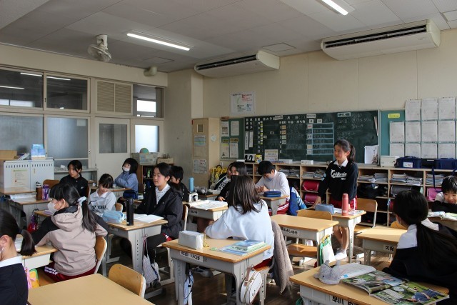 家庭科の時間には、エプロンの作成を進めました。地域ボランティアの方にミシンの使い方など、支援していただきました。書写では、今まで学んだことを生かしながら「近づく春」を書きました。理科の時間には、命の始まりについて学習しました。
