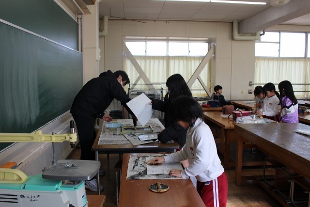 2月16日 3年生 公開日 2026/02/16 更新日 2026/02/16 各学年から 図工の時間には、版画の印刷をしました。理科の時間には、今まで学習したことを生かしたおもちゃ作りの計画を立てました。