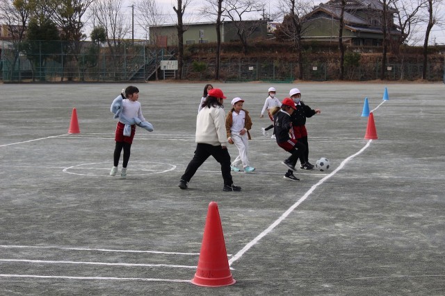 体育の時間には、ボール運びリレーやハードル走、ミニサッカーゲームをしました。書写の時間には、部首の組み立てに気を付けながら漢字の練習をしました。