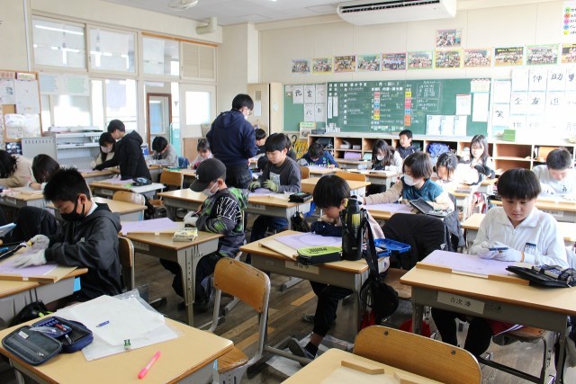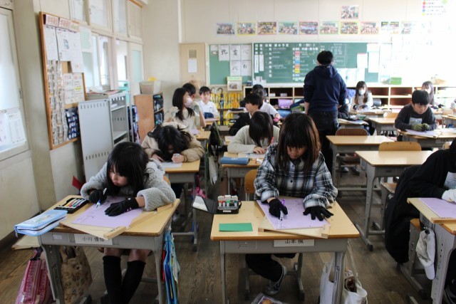 外国語活動の時間には、1日の生活についての物語を聴き、どんなことをしているのかを話し合いました。図工の時間には、木版画の作成を進めました。