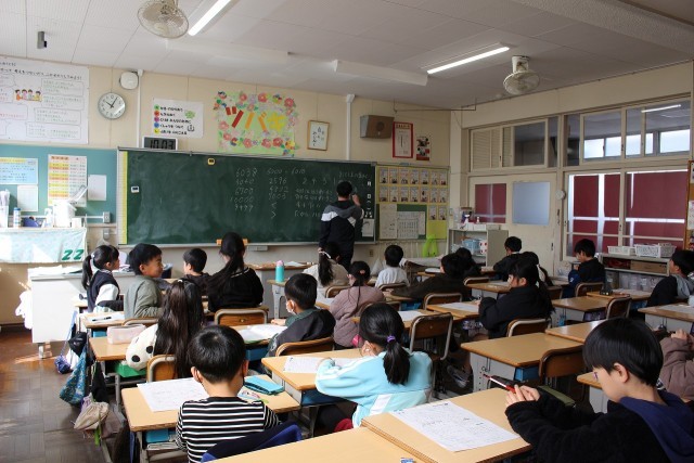 算数の時間には、模型をみながら立方体の辺や角の数を調べたり、テストの直しをしたりしました。