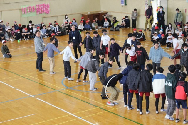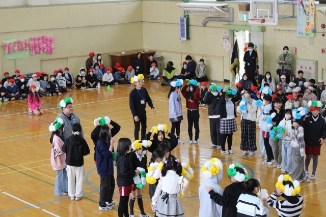 3年生は、運動会で踊った旗のダンスを発表しました。切れのあるダンスでげんきを届けました。4年生は「どっちが勝つでしょうクイズ」で6年生のクラス対抗輪くぐり競争を企画しました。みんなで勝敗を予想し、盛り上がりました。