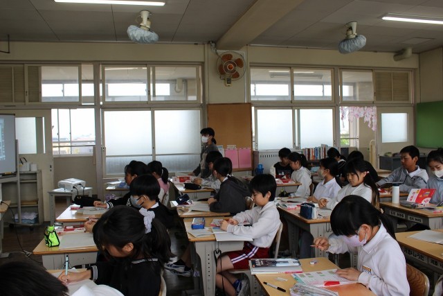 外国語科の時間には、新しいALTの自己紹介を聴き、自分たちも自己紹介をし合いました。社会科の時間には、歴史の学習の進め方を確認しました。算数の時間には、線対称の学習をしました。